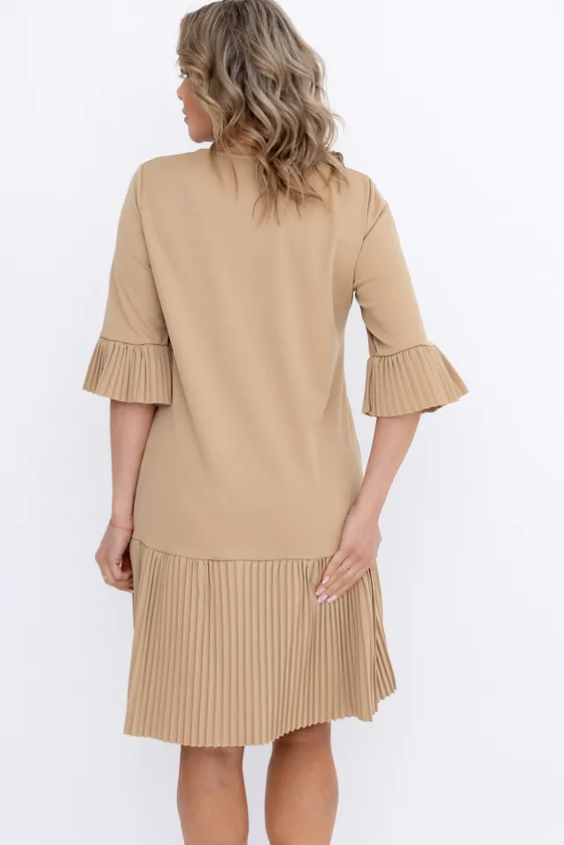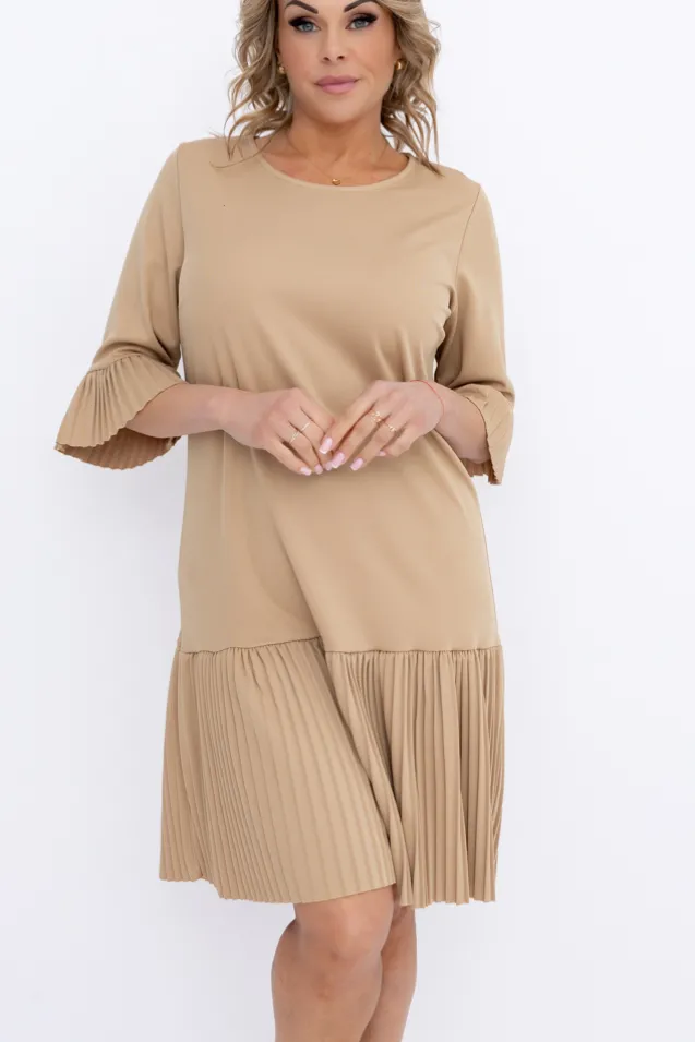 Beżowa Sukienka z plisowaną falbaną SENORI