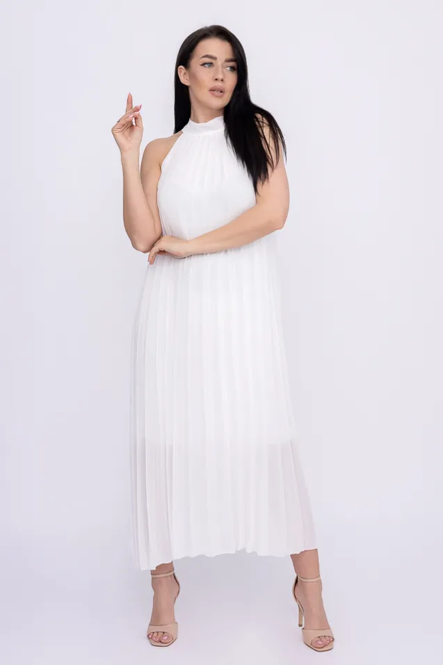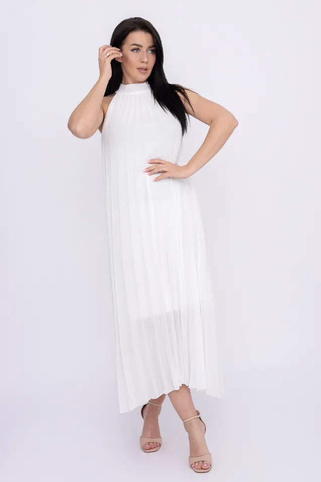 Biała plisowana Sukienka szyfonowa LUZIO
