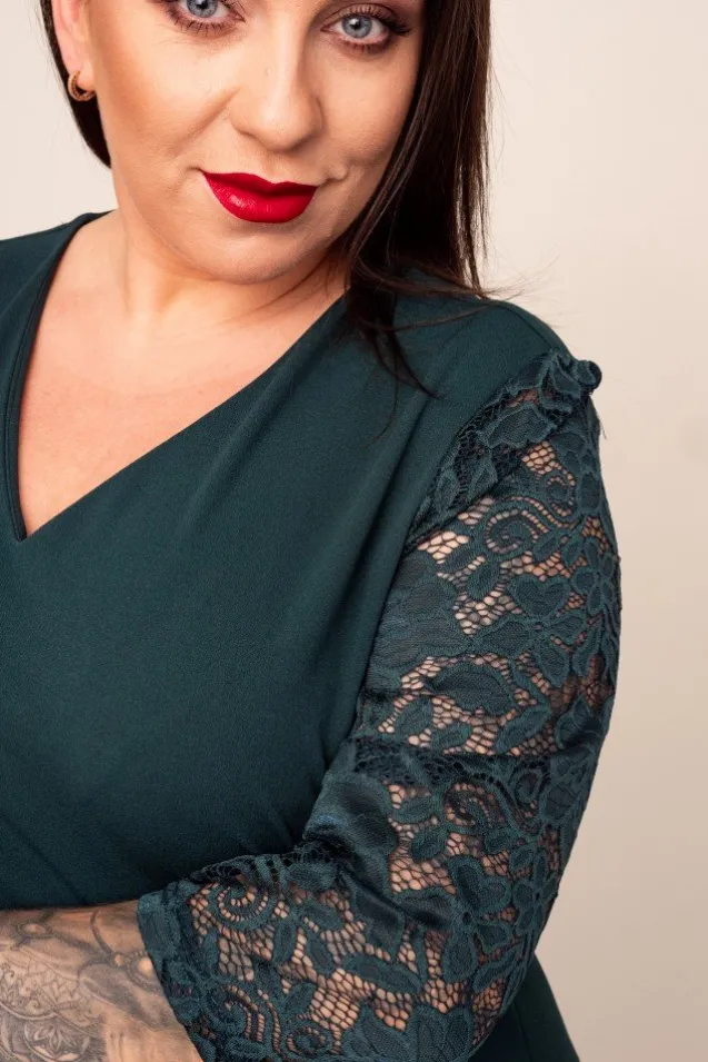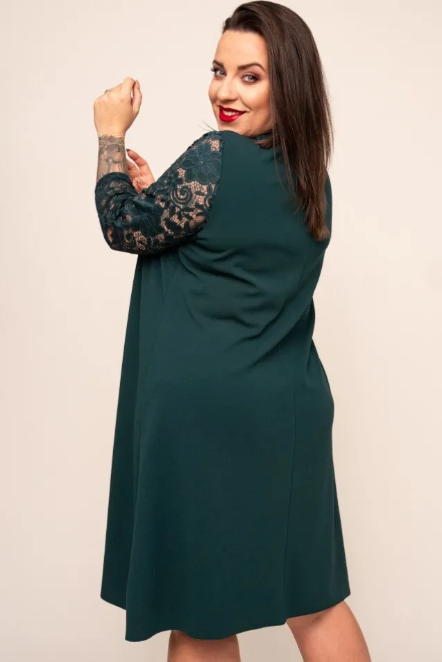 Zielona Sukienka z koronkowym rękawem EVE